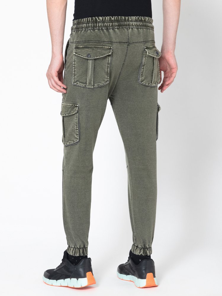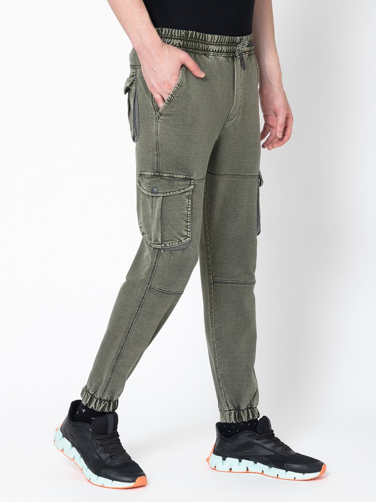 Men's Regular Fit Green Cargo Joggers