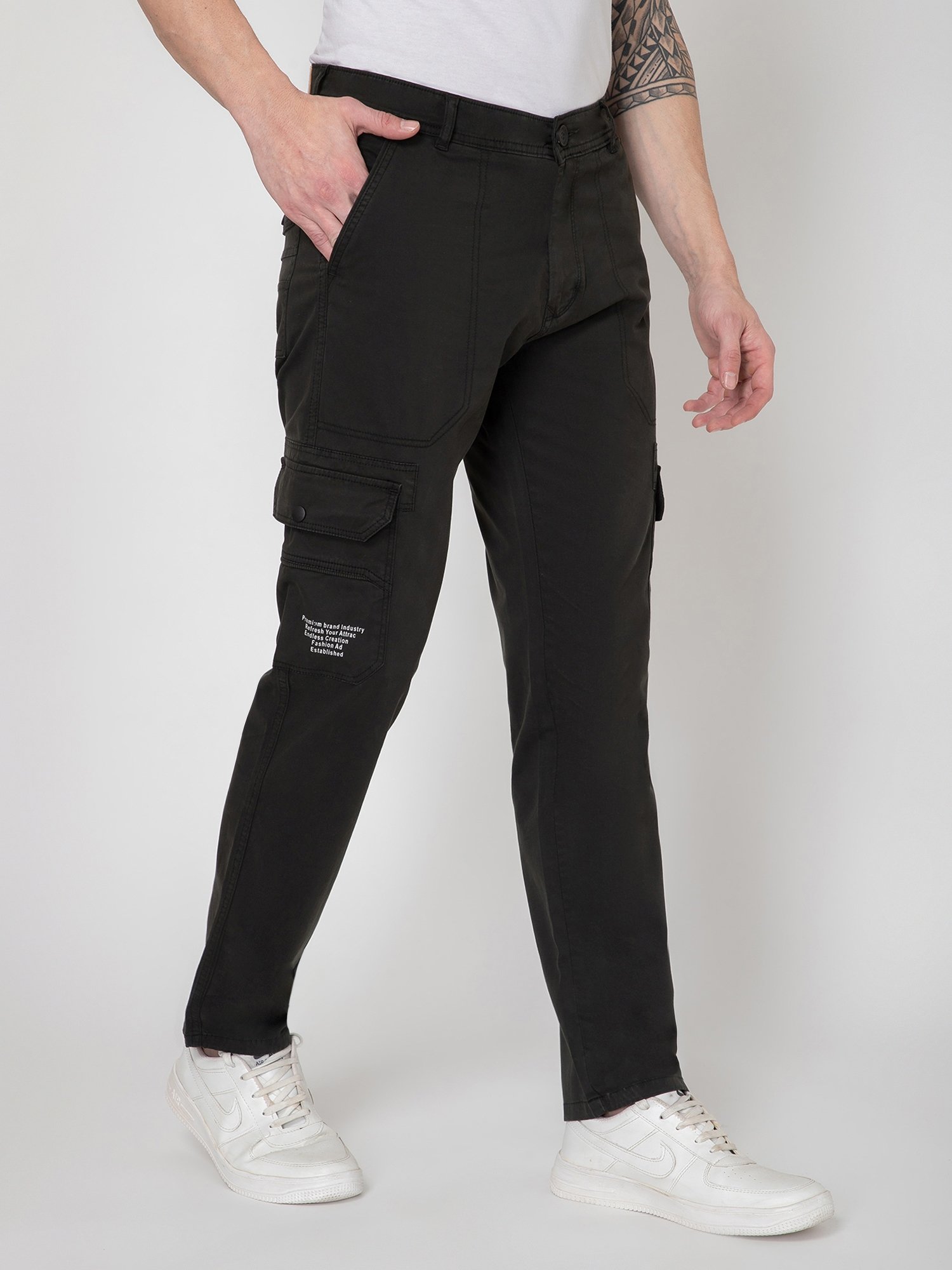 Upgrade your wardrobe with these stylish and versatile Men's Regular Fit Cotton Cargo Pants from Scary Fox. Crafted from premium quality cotton, these pants offer a comfortable and breathable fit, making them perfect for both casual and outdoor activities.